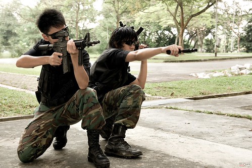 I think forest also got nothing to hitWell i know SOMEONE did drop it! hahaaha luckily it's ok too. But from this incident i damn worried to use my props again for part 2 or can use but no more using the weapons to hit stuff and i better make sure all got slings hahahaa MY GUNS NOT CHEAP HOH!!!