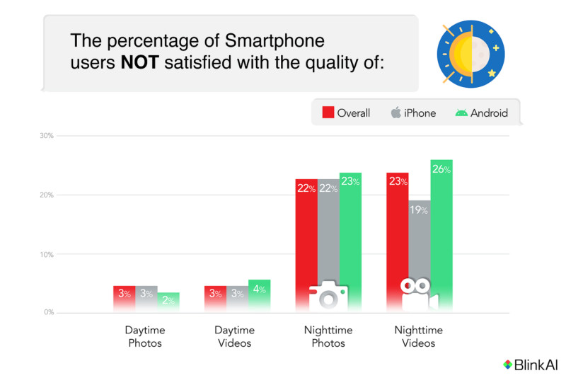 Looking at it from a different perspective, respondents also said they were most dissatisfied with the state of nighttime photo and video capabilities on smartphones by a wide margin more than the quality of daytime photos.