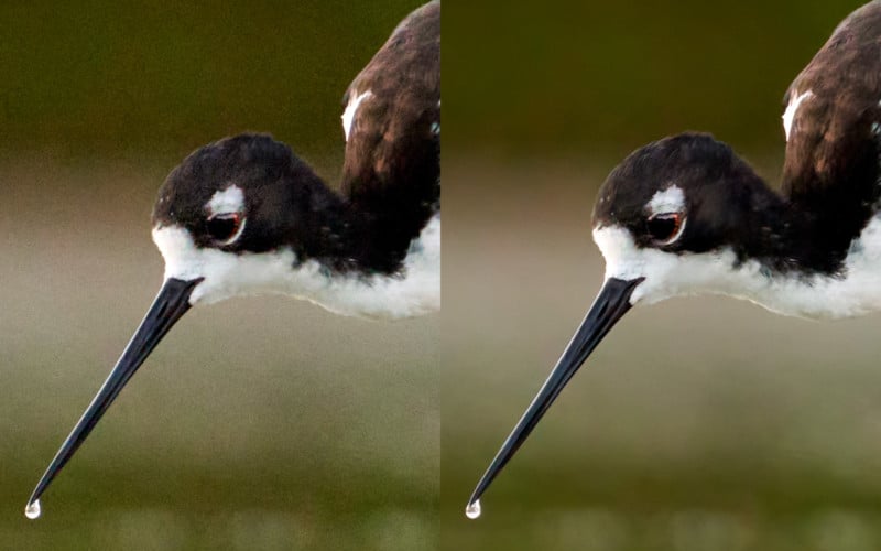 Before and after running the photo through Gigapixel AI. 100% crops.