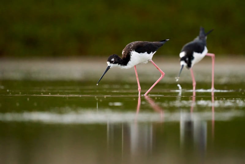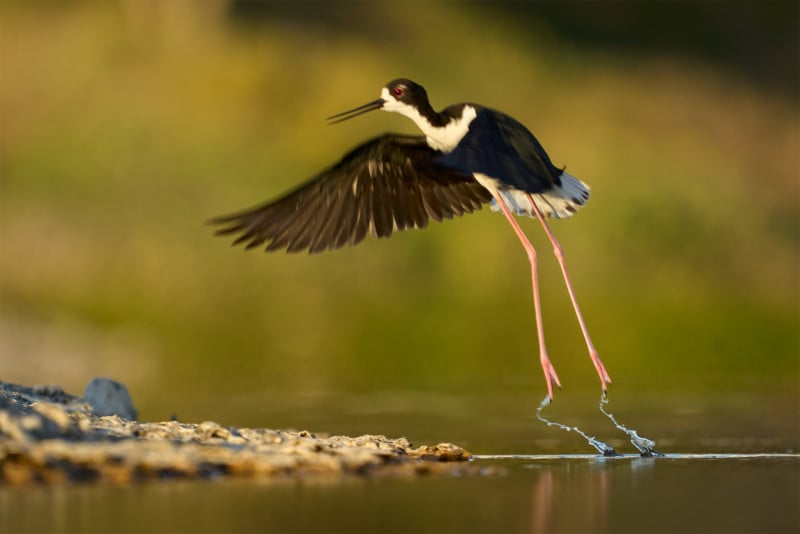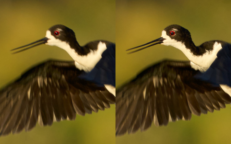A couple of years ago, my example photo of the Hawaiian Stilt was destined for the trash bin. What I like about the photo are those long tendrils of water connecting its feet to the pond. Unfortunately, my camera settings were set for pictures of it walking along and my shutter was not fast enough to freeze the action when it burst out of the water. The head, and most importantly the eyes, suffer from extreme motion blur. Having taken the photo in Hawai’i, it’s not like I can just say “better luck next time” either.